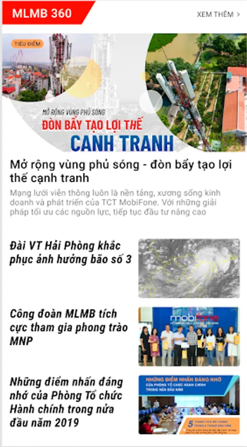 MLMB News is an internal news application exclusively for employees of the Northern MobiFone Network Center, belonging to MobiFone Telecommunications Corporation.