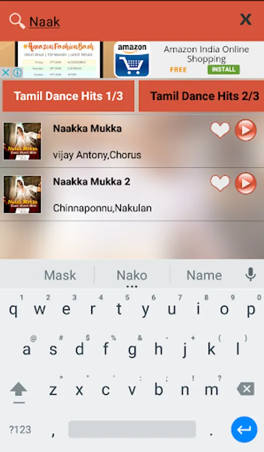Download the free Naaka Mukka Tamil Dance Hits a music App tailor-made for Kollywood Music fans who are ardent fans of dance songs. This app has got the best collection of the latest Tamil Dance Songs from the latest Tamil films.