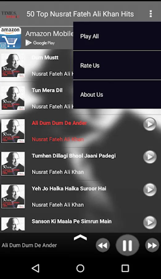 Download this app to get the best collection of Nusrat's hits including Dum Mastt, Kinna Sohna Tainu, Mera Piya Ghar Aaya, Sanu Ek Pal Chain Na Aawe, Allah Hoo Allah Hoo, Yeh Jo Halka Halka Suroor Hai,Tumhen Dillagi Bhool Jaani Padegi, Ali Ali Ali Maula Ali Ali, Ali Dum Dum De Ander, Sanson Ki Maala Pe Simrun Main, Yeh Jo Halka Halka Suroor Hai and many more timeless collections.