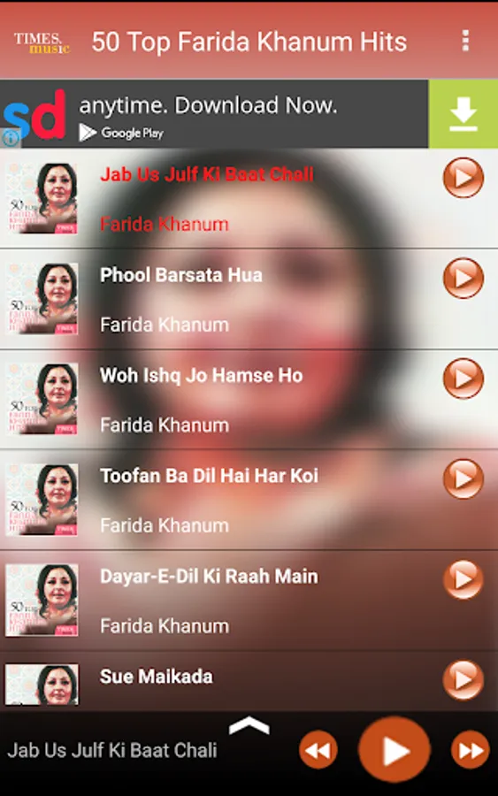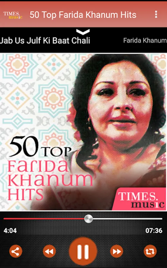 3. Featuring 50 Top Farida Khanum Hits. Once Streamed Song can be played in OFFLINE Mode also.