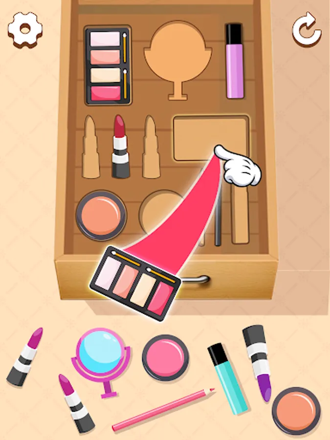 Organize goods sorting games gives multiple levels to organize my tidy life with fun girl games by organizing makeup and other cosmetic material of makeup kit organizer asmr game. Have fun playing goods triple sort beauty organization games with a number of makeup organizer goods sort techniques in cosmetics organization goods match 3d fun girls games.
