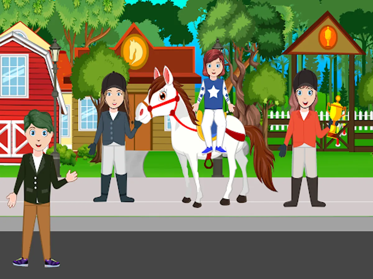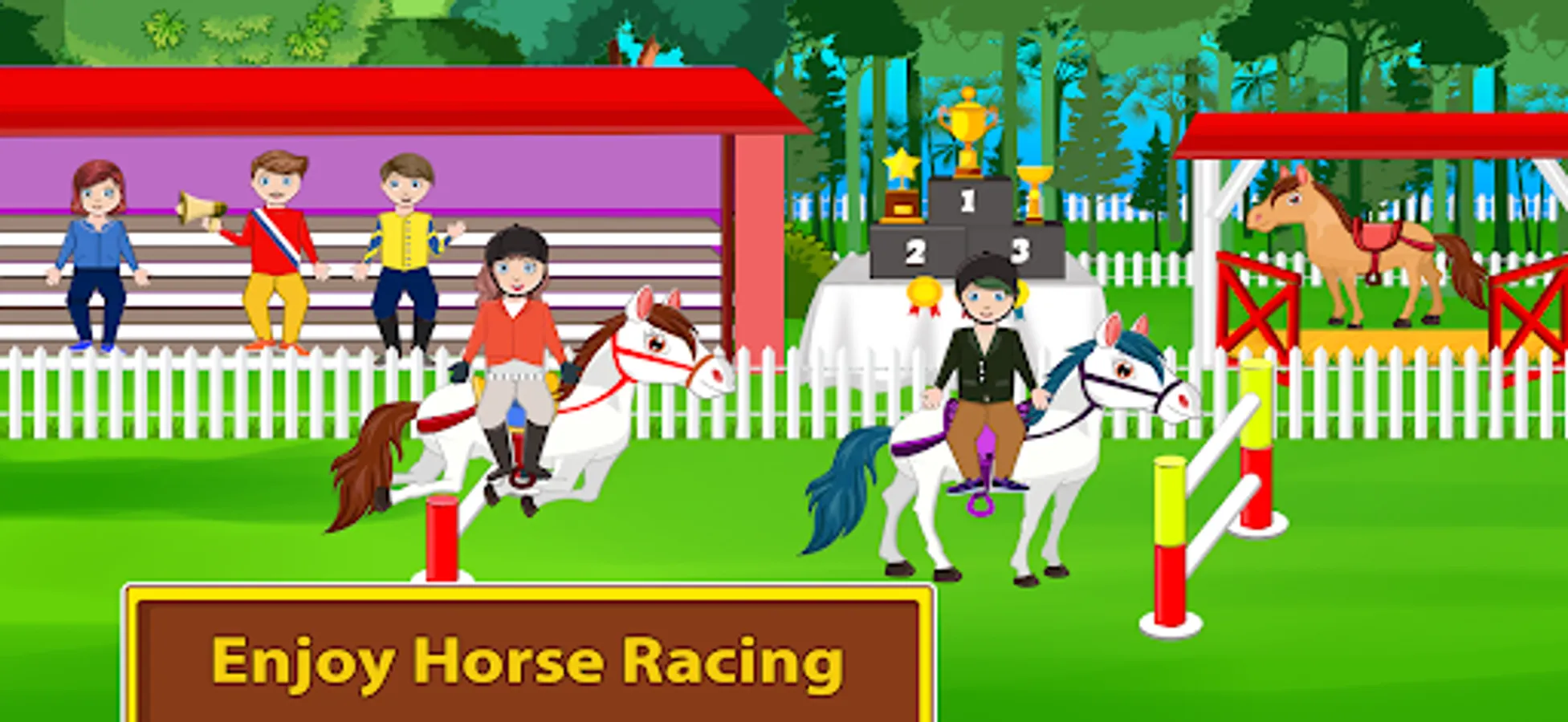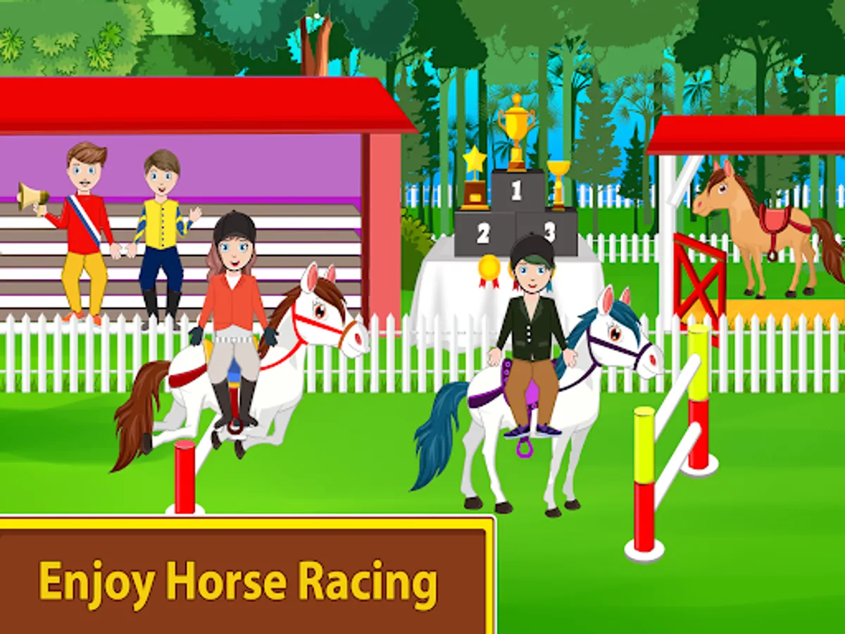 Once you've managed these tasks you will continue the cleaning in the stable and the pony's farm house. Follow the instructions and use similar techniques for restoring their places to get them cleaned. In this horse simulation game you have to set proper environment for them to grow as a pro unicorn farm manager. Show your girls & boys some real horse racing stunts while performing dressage. Show jumping with your princess horse and become a champion of this horse stable life. You have to be careful to satisfy all needs to make the cute animal happy and pleased about his condition. All that's left is to help him out in his race and do some interactive activities. Get him to run fast and get well through all the different levels in this pretend farm town. So, download and enjoy this horse stable life.