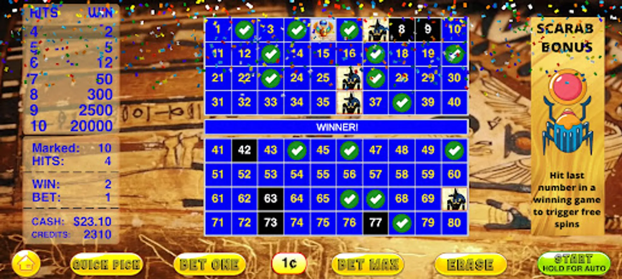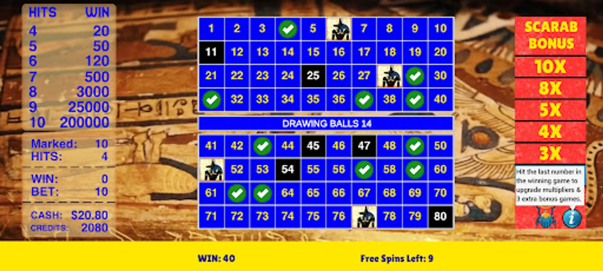 ✪ PICK 1 to 20 numbers out of 80 numbers and autoplay the game.