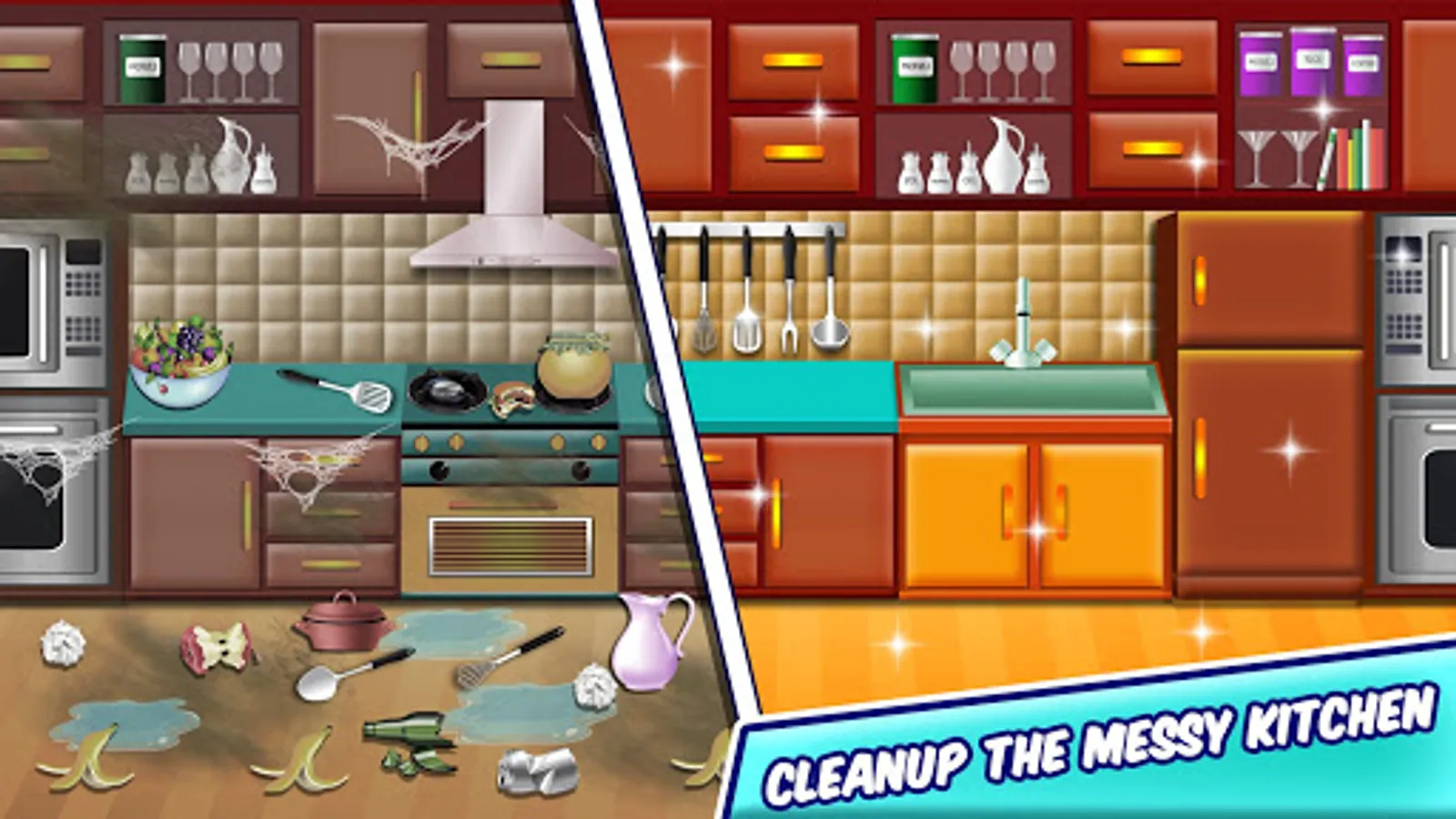 Girl family house cleaning game helps you take care of a little girl's dream house and decorate it. Be a home cleanup service provider & renovate little kid's dream family house. Kitchen is all messed up, dirty dishes in the sink & crockery scattered on the shelves. Perform dish washing and kitchen cleanup activities to arrange and manage the messed up kitchen room. Shine up every corner to make your doll house luxurious kitchen all tidy.