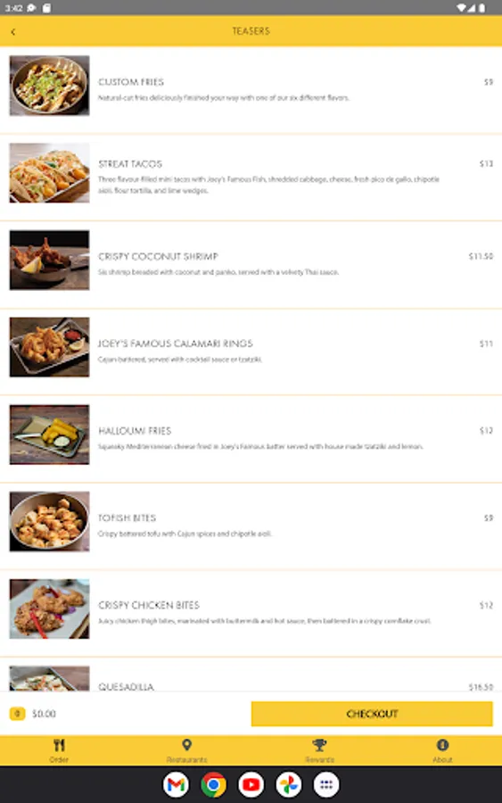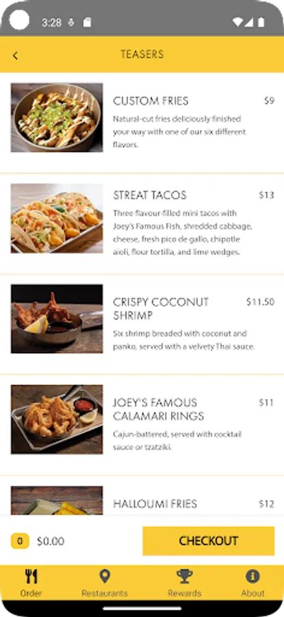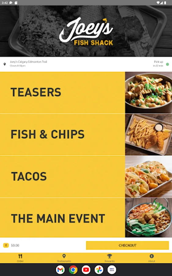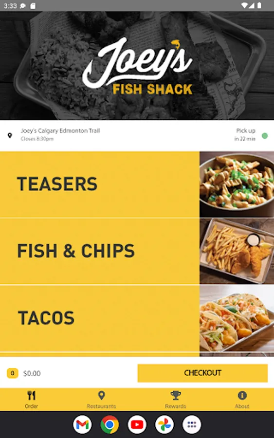 Joey's Fish Shack Online Ordering App. Welcome!
