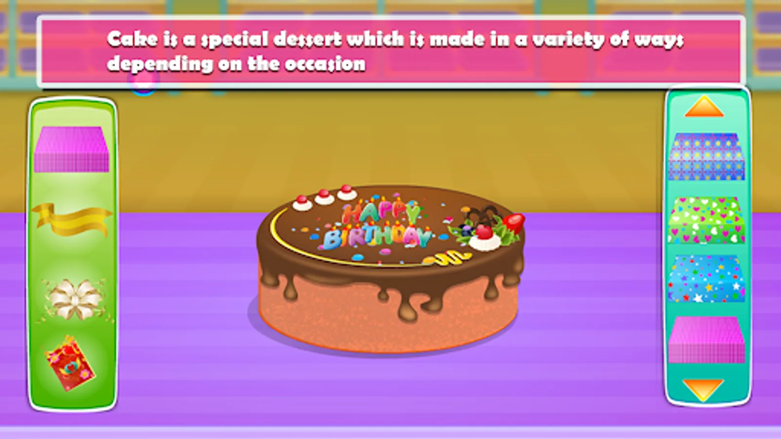 CAKE: Cake is a special dessert which is made in a variety of ways depending on the occasion. When it comes to the First Year Birthday Cake then it's something more special because it should be embellished with a wide range of decorations and with vibrant dressing on it. In this game, we can pick any cake base from the options.