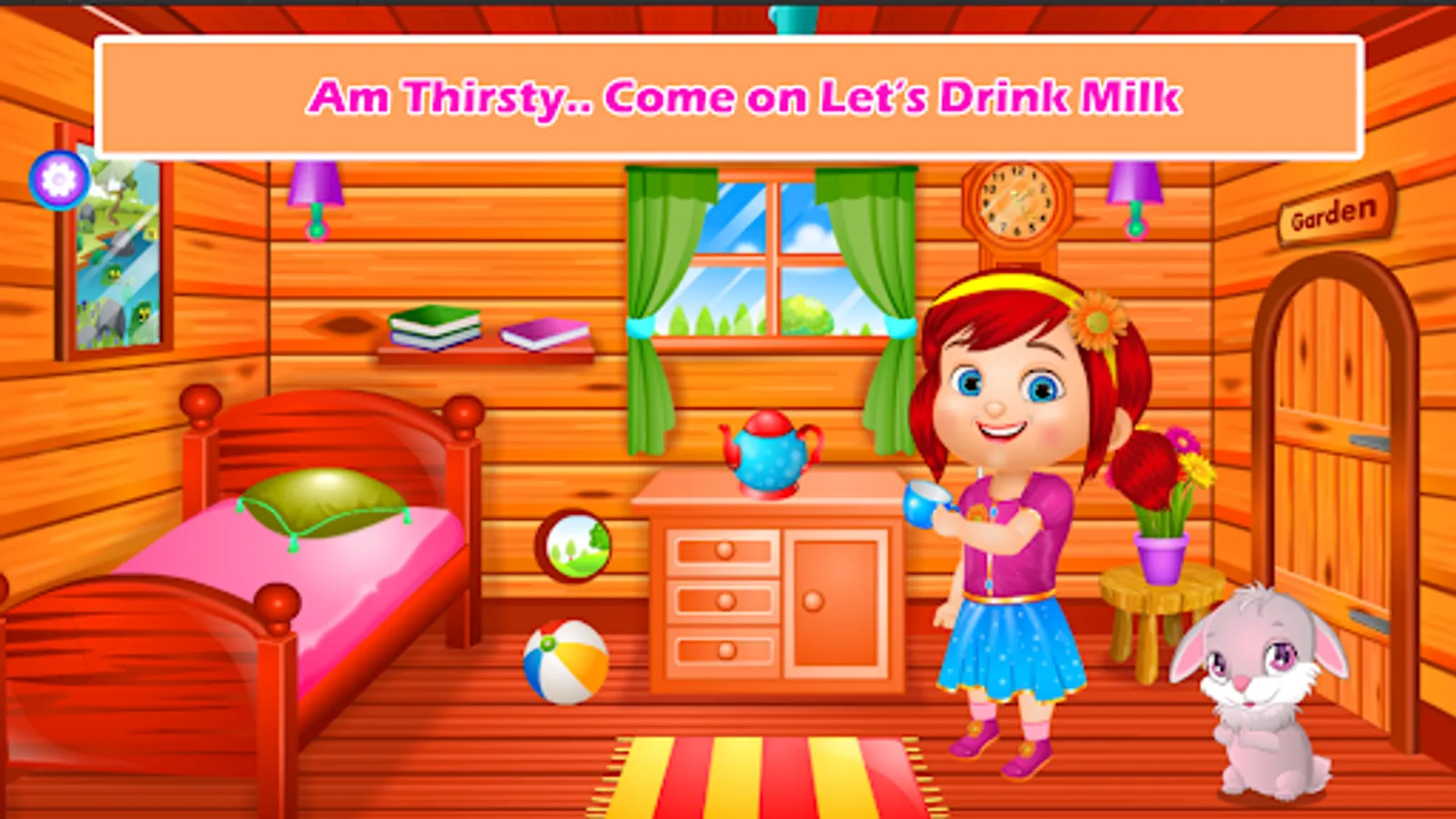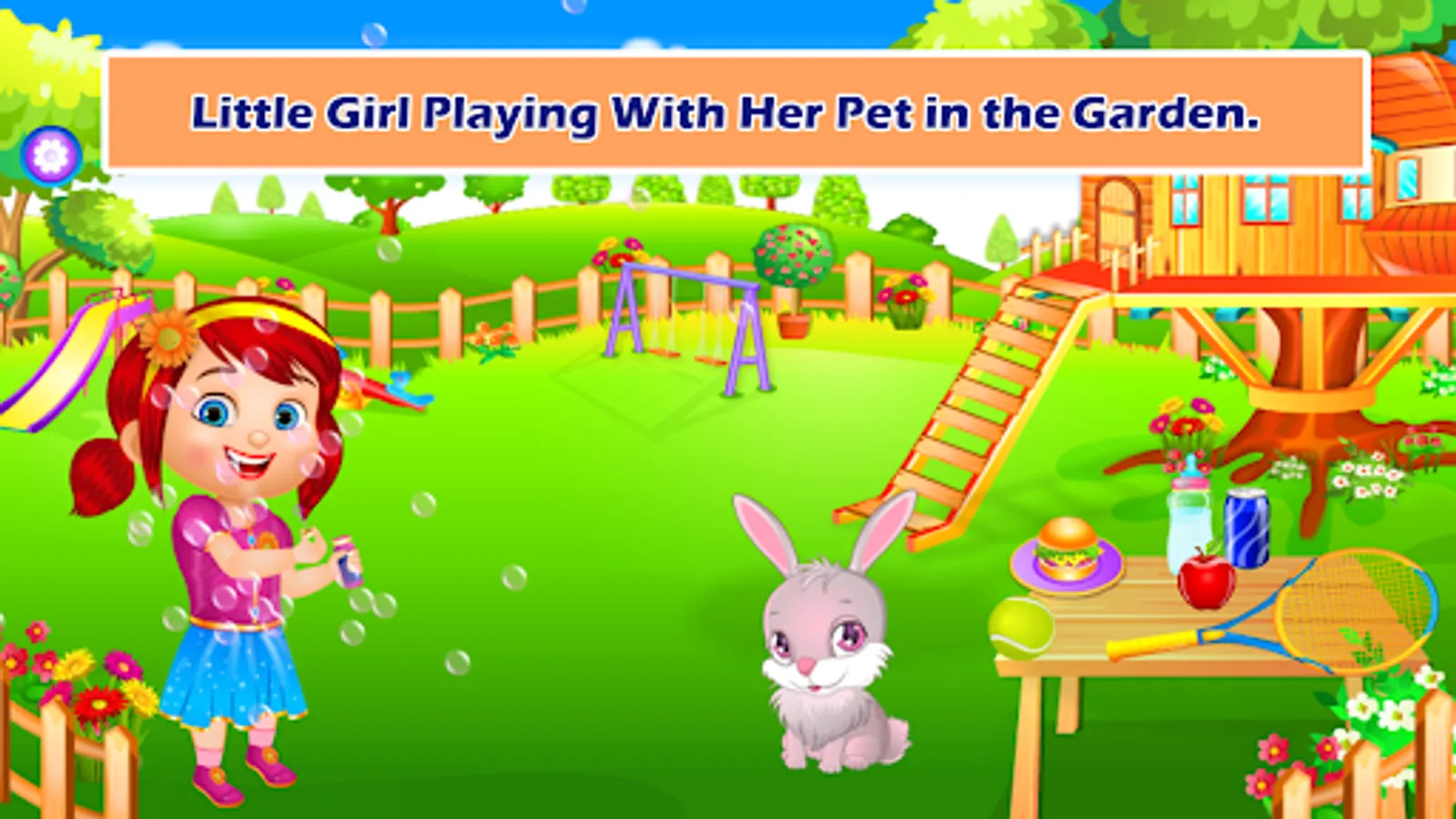 Here in this game, our small girl who plays in the garden goes to her tree house in search of her missing ball. As a next step, she cleans the entire house, including the hall, the bedroom, the kitchen, and the balcony. She waters her plants and gives food to birds, fish and squirrels also. The purpose of this game is to help our children learn more about the importance of keeping their surroundings clean, how to properly care for plants and small animals, and how to cook food when they feel hungry.
