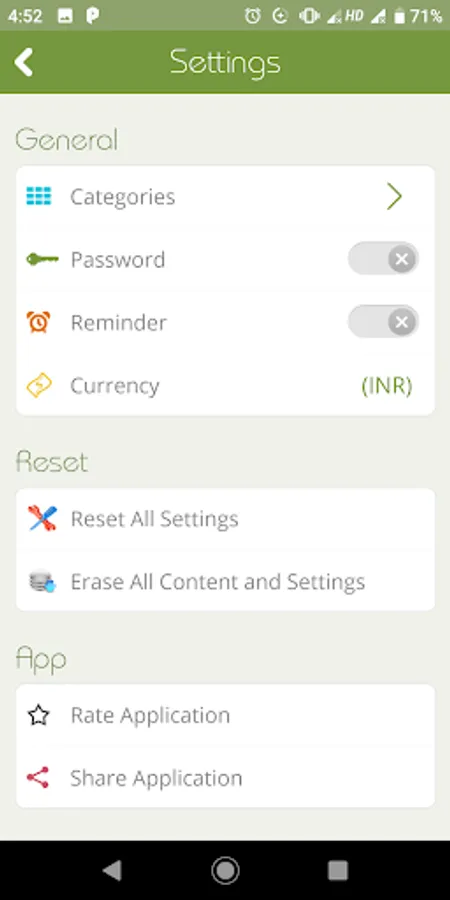 - User can create your own categories with custom name, image and - User can set App Authentication (set Password)