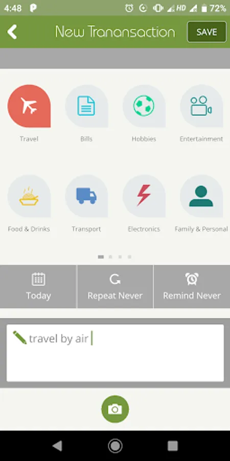- You can set transaction repetition mode (daily, weekly, monthly..).