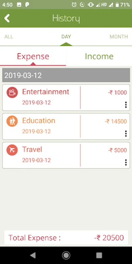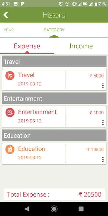 - User can view the history of all transaction (Like.. All , Day wish,Month wish, Year wish, Category wish )