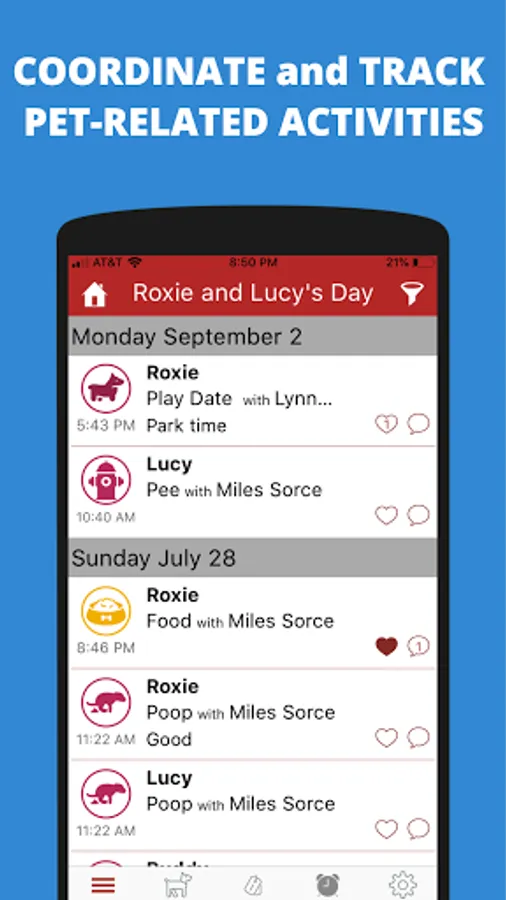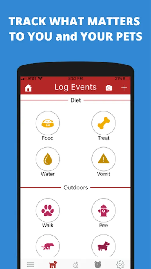 2. Log activities, such as giving food, going on a walk, and giving medication