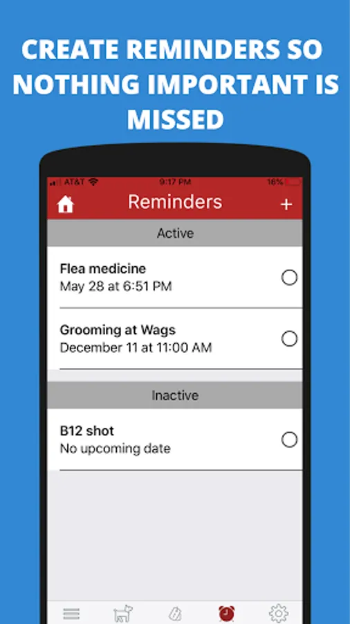 5. Create reminders and alerts so you never forget to take care of your pet.