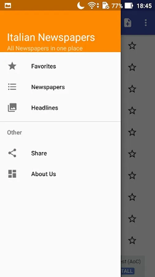 Tutti i Quotidiani Application provides web links and headlines of whole Italian newspapers and news sources.