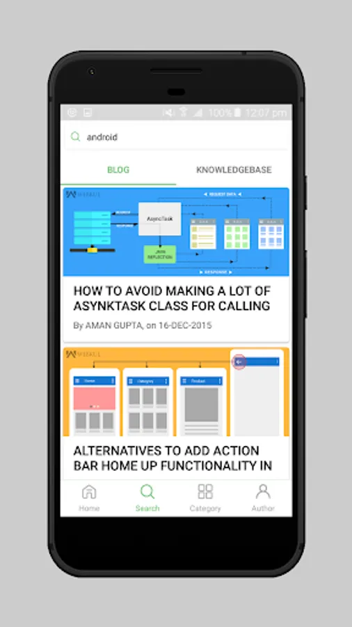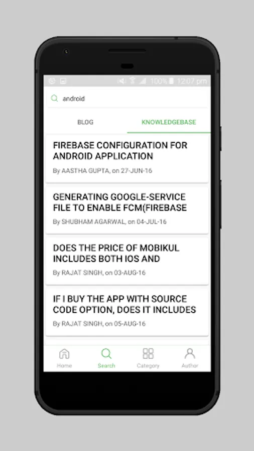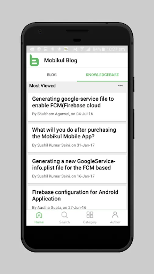 The app contains two separate section for blogs and knowledgebase, which is divided among recent and most viewed post. The category section divides the blogs for easy search and a ordered display. In addition, the customer can see the blogs and knowledgebase as per author. The search feature benefits the customer to fetch the blog and knowledgebase as per keywords.