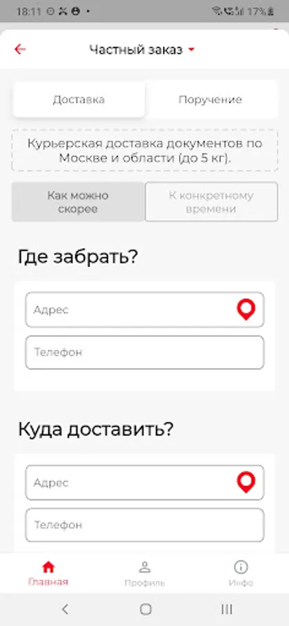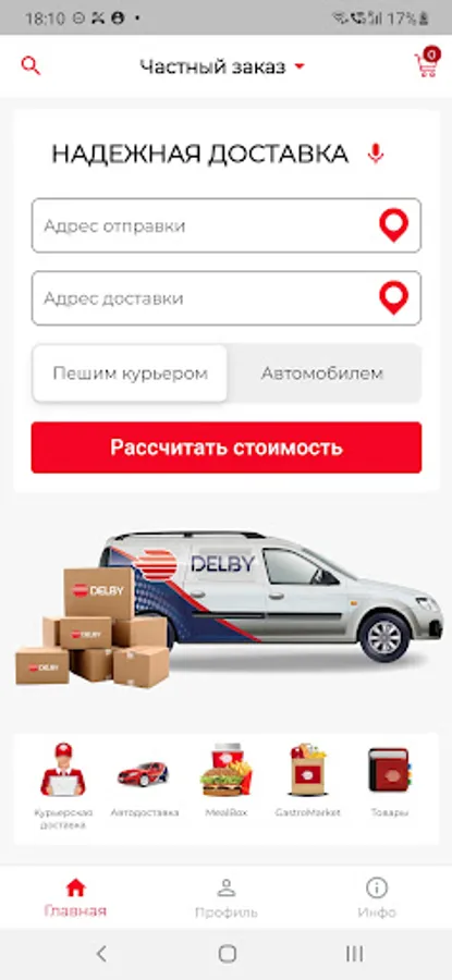Delby is a courier delivery service for individuals and legal entities. Place an order and the courier will deliver the package at the specified time.