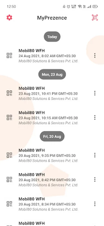 This app works in conjunction with the ‘Prezence’ app where the organization administrator can view all scans from the related members of the organization from this ‘Prezence member’ app
