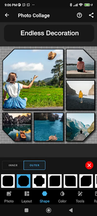 [FrameMagic] enables you to create awesome photo collage within just a few seconds with tons of layouts, endless decoration options, powerful text editor, sticker creator and powerful drawing tool.