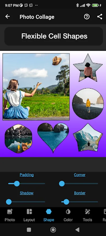 - Custom cell shapes incluing circle, heart, star and polygon.