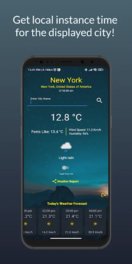 Discover accurate, real-time weather information for any city across the globe with our comprehensive weather app. Stay informed with up-to-date details, including temperature in both Celsius and Fahrenheit, humidity, wind speed in km/h and mph, and the local time of your chosen city.