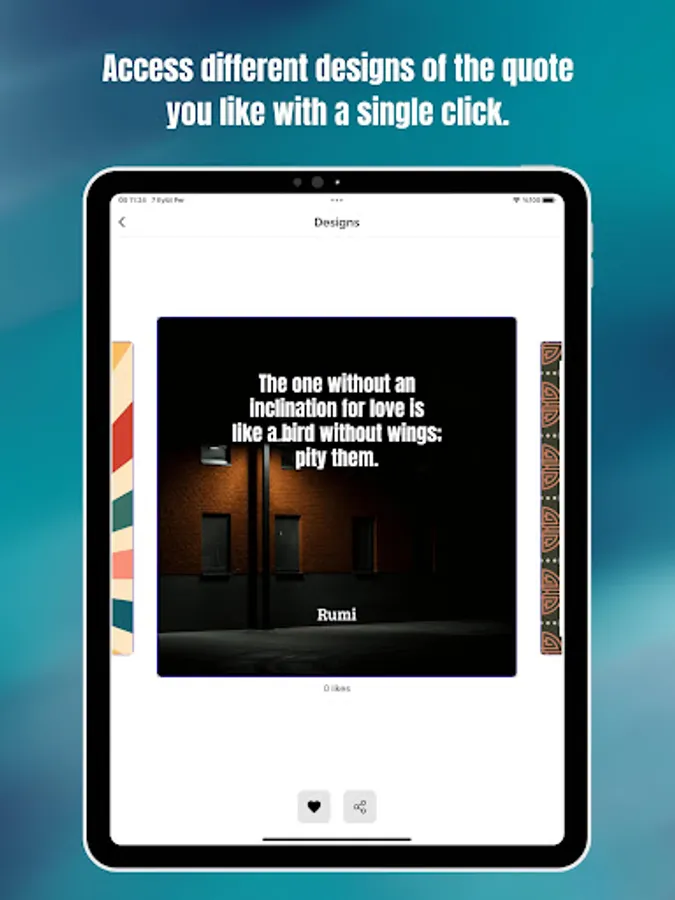 Content Sharing: Share your favorite quotes on social media or with friends through the share button. Spread the beauty of Rumi and Mathnawi's wisdom with others.