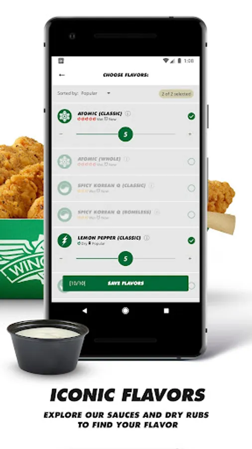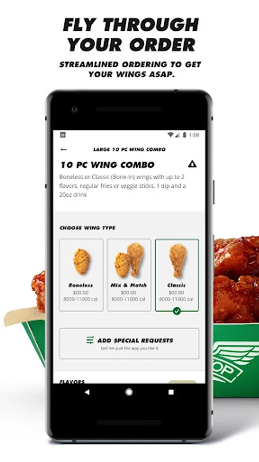 You bring the appetite, we’ll bring the flavor. Our brand-new mobile app makes it easier than ever to satisfy your craving by ordering ahead for delivery or carryout. Choose your made-to-order masterpiece featuring any of our 11 iconic flavors from your favorite Wingstop location.
