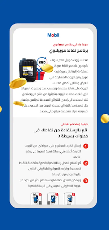 Mobilawy points program, which enables lubes shops participating in the program to accumulate points with every purchase of each Mobil oil SKU included in the program and according to specific segments. Mobilawy offers users value vouchers that can be redeemed within our network of merchants.