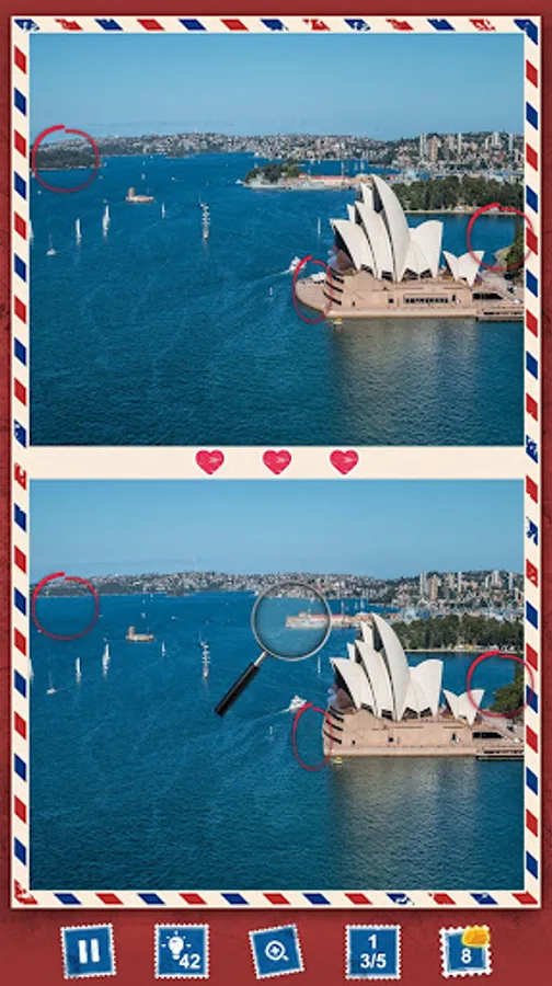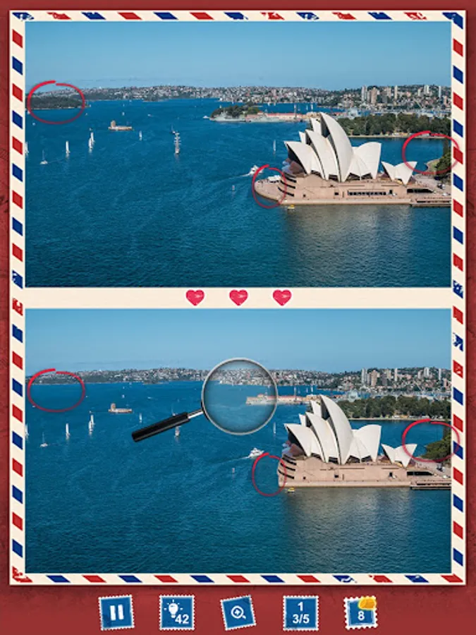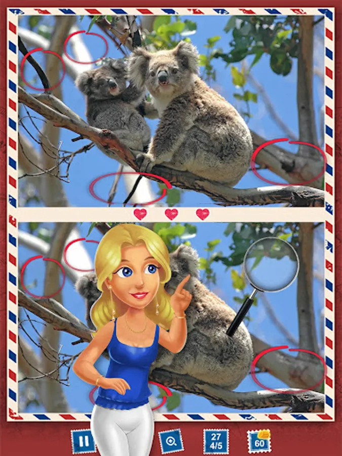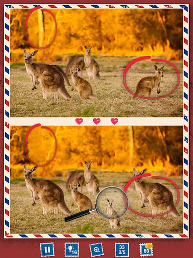 Set out on a photo hunt through Australia with your tour guide, "find differences" detective Shirley Combs! π΅οΈββοΈ Compare pictures of βthe Land Down Underβ and seek out the 5 differences hidden among them. Try to search and spot it! With find the difference games free, test and see if your scavenger hunt skills are up to the challenge.
