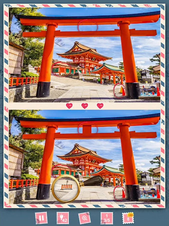 Search, scan and compare two similar pictures to spot the difference between them. Already played find the difference games or are you out of puzzles? On a scavenger hunt for another challenge? Find the difference Japan is a 5 differences games where you can bring out your inner detective. Just search for the hidden differences and spot it!
