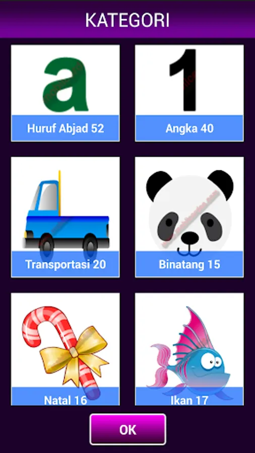 Not only that, the game can also be used to train your children's concentration through categories such as figures, letters ABC, other interesting pictures that all of his available in the category that you can choose.