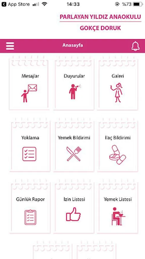 Our mobile application that builds an online bridge between our kindergarten and parents enables our parents to reach their children's information quickly. Our parents have access to their child's food lists, monthly programs, newsletters, etc. as well as their children's visuals.