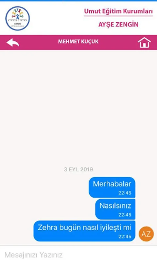 Umut Education mobile application, which builds an online bridge between our kindergarten and our parents, enables our parents to access their children's information quickly. Parents can access their child's information such as meal list, monthly program and newsletter, as well as their child's visuals. In addition, the institution and the teacher can get instant information by messaging.