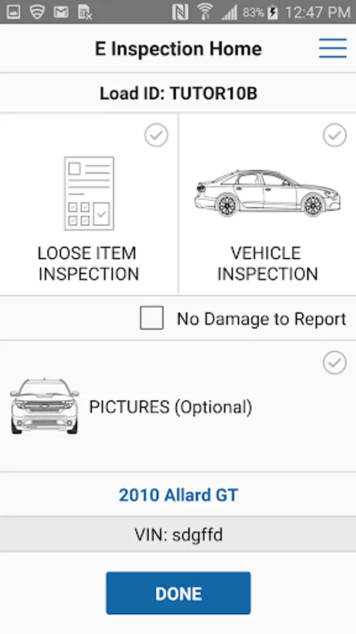 • Records Loose Item inspections of vehicle