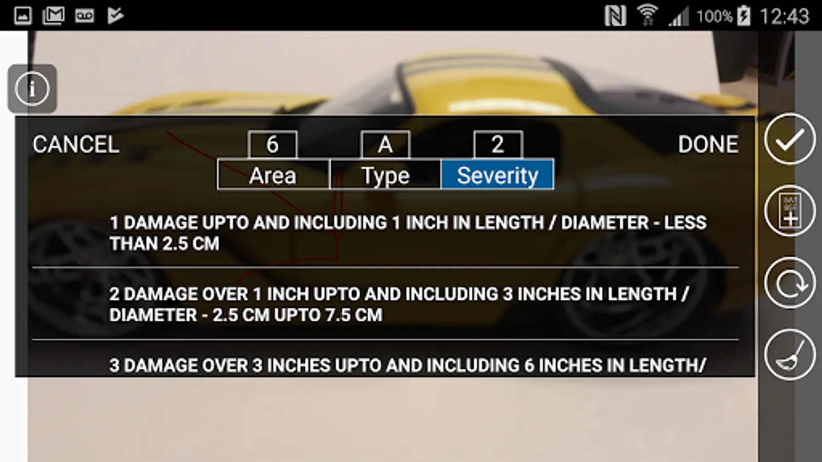 • Records damage to each panel of vehicle