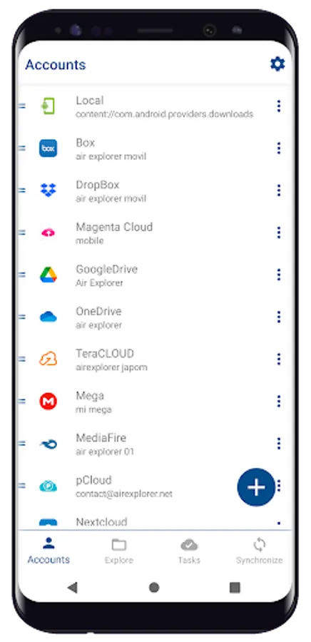 Air Explorer for Android allows you to navigate, copy & paste, cut, delete, rename, transfer, download & upload and organize files and folders in your clouds and device. You can also use Air Explorer to synchronize and encrypt your cloud files.