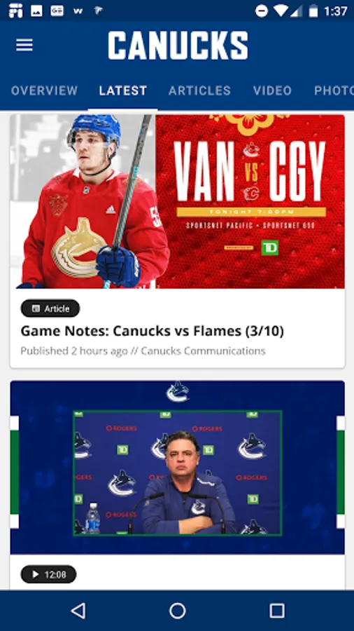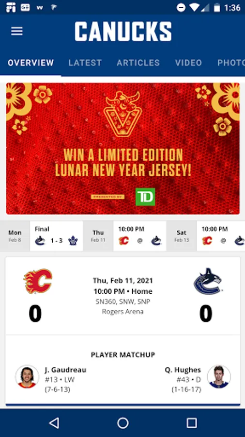 Welcome, Vancouver Canucks fans! This is your single-touch access to the Vancouver Canucks. Get the latest Canucks news, scores, stats, media, and game-day information. The Canucks app also allows you to manage your tickets, participate in province-wide 50/50 draws, play games on the Rogers Arena video board and more.