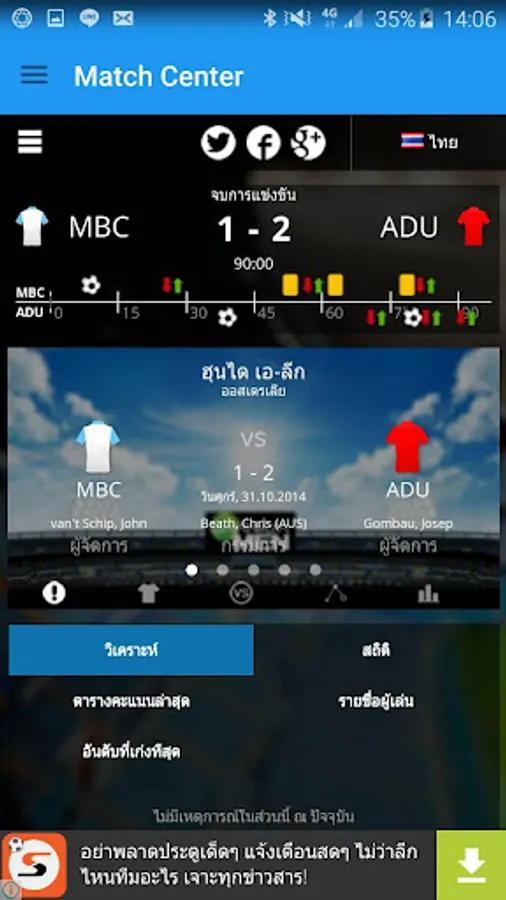 - Notifications : Push message Siamsport News Alert sent directly to you
