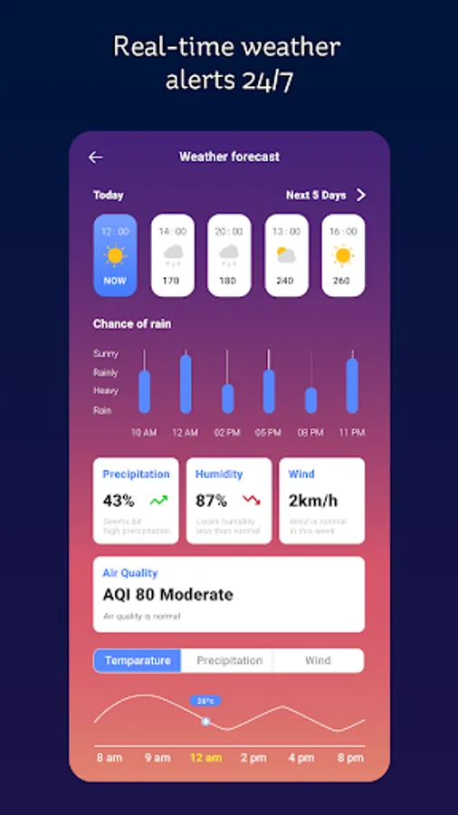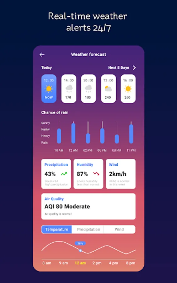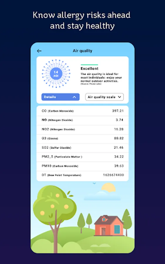 Get local weather updates by minute, hourly, daily, weekend and historical in a single weather app that you can rely on for your everyday weather forecast. With in-depth forecast details, forecast updates, severe weather alerts, air quality, pollen, allergy, UV index information and weather radar, this app provides complete weather forecast in your palm.