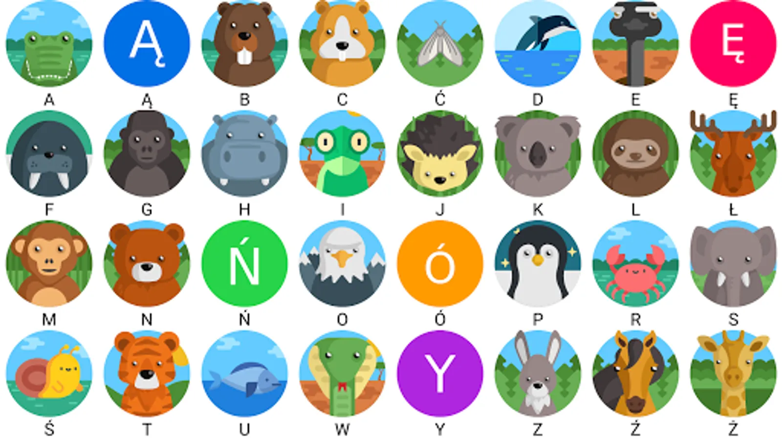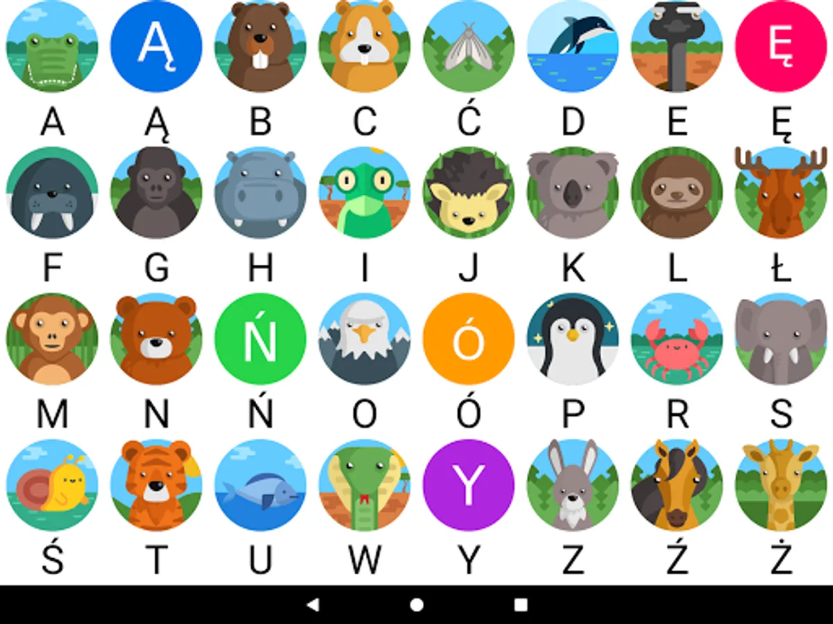 The application is used to learn Polish letters by animal names.