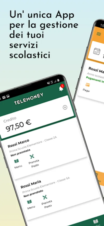 Telemoney is the App dedicated to the school that includes in a single solution the management of the School Canteen, the School Transport, the Book Coupon and the contribution of the Book Voucher.