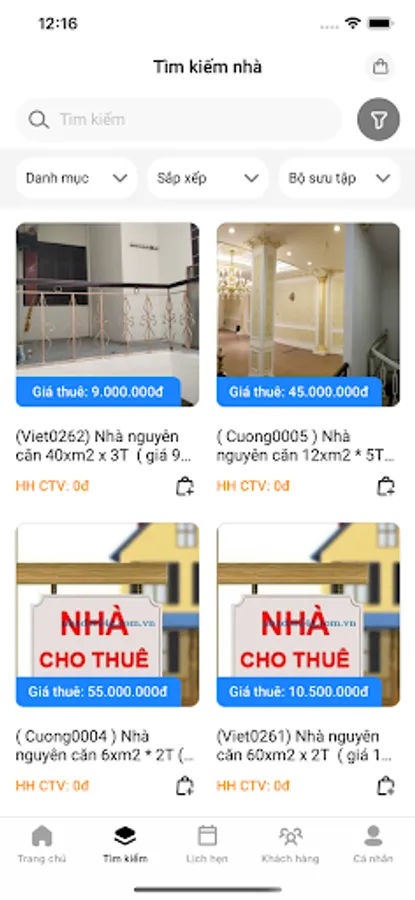 • Application to connect between tenants, landlords, collaborators. Simple operation by creating an appointment for guests to see the house and wait for the commission to be collected.
