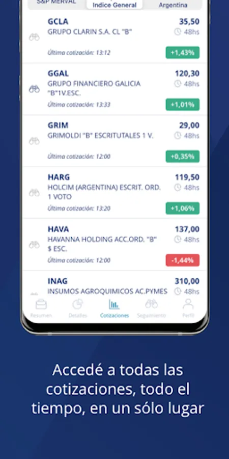 Track holdings with real-time trading and invest in all the instruments available on the market: Mutual Funds, CEDEARs, Stocks, Bonds, purchase and sale of the MEP Dollar, etc. DMA (Direct Market Access) operation with instant order execution.