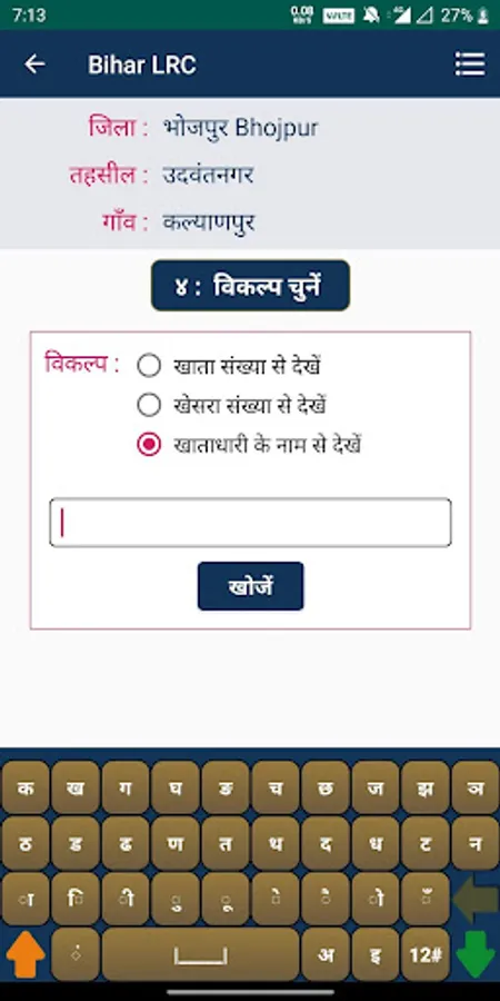 4.Enter credentials - You can search by entering the account No./ by the name of the account holder/khasra number.