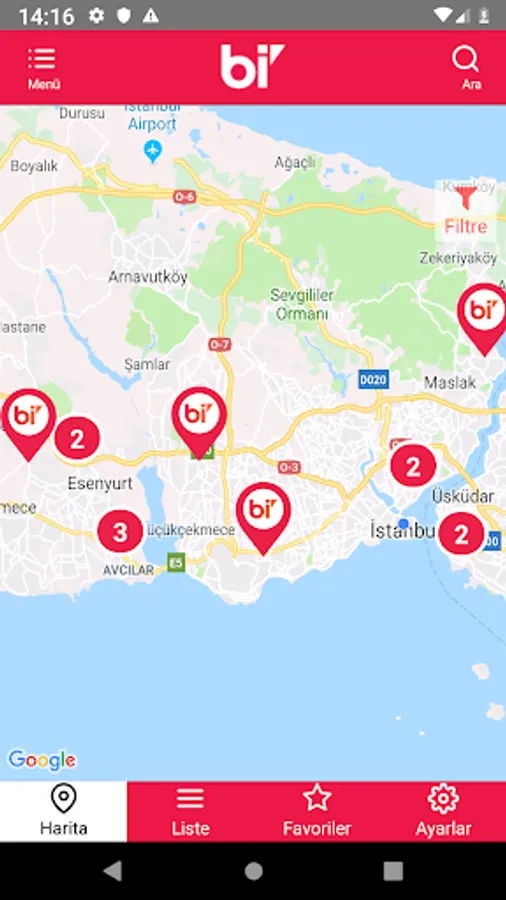 9.You can list the restaurants on the map with the list icon at the bottom of the main page, and you can see the list of restaurants you have previously chosen as favorite with the favorite icon.