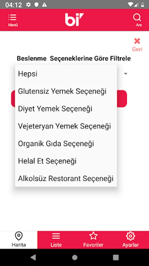 8.You can see restaurants on the map by classifying them according to alternative nutrition options by clicking on the filter icon on the map.