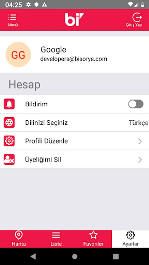11.After clicking the settings icon at the bottom of the main page, you can click on the sections that appear: You can receive notification, change your language, edit your profile, delete your membership.