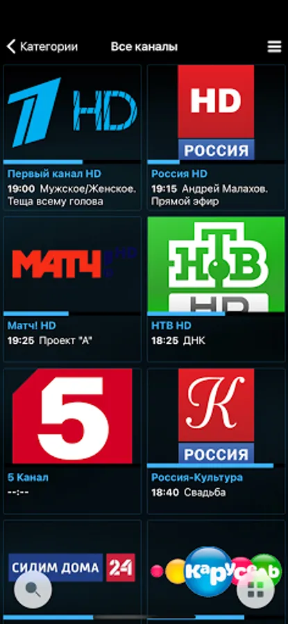 Данное приложение BISV.TV mobile разработано для смартфонов и планшетов на базе Android. Помимо классической навигации реализованы управление жестами и голосовые команды. В настройках пользователь может выбрать стиль представления телеканалов: плитка, либо список.