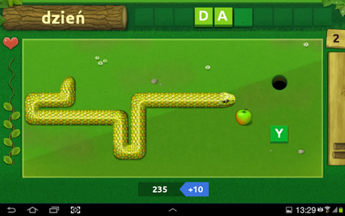 Snake - Arrange an English word eating the letters in the correct order. The question is in the upper left corner. You have 3 lives.