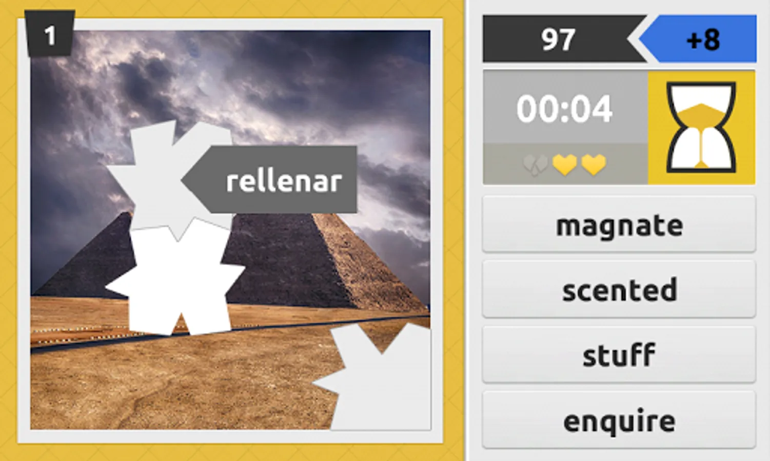Quiz - Choose correct answers and uncover whole picture! A word in your native language is shown on the puzzle. If you uncover whole image you will get a bonus game!