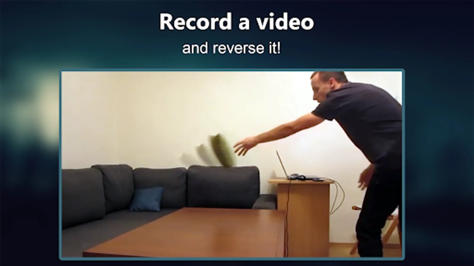 Reverse Magic Movie FX is an app that lets you create a reverse video that looks like a magic trick! With our reverse cam video player, first record a video of someone (or you): walking, drinking orange juice, talking or any other idea that comes to your head! After that select a desired movie fragment and press start! The app will reverse your video: you will see people walking backwards, your friend spitting the juice out, people talking backwards!Rewind time with reverse camera and create stunning reverse videos