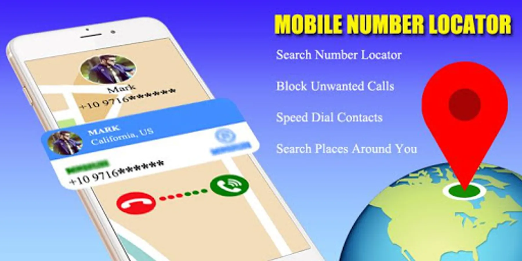 Locate caller number location, mobile number locator with mobile call number locator. Find caller mobile number details and display it on map, get detailed caller ID info and live phone call on map using mobile number tracker & locator. Mobile caller number locator app helps you find mobile number location on map. Its easy to search any mobile number use live mobile number tracker phone caller location app.